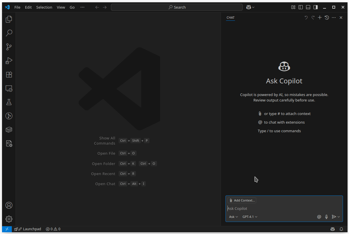 améliore les réponses de l'IA en utilisant des connaissances spécifiques.@workspace, @vscode, @terminal, ... permettent d’interagir respectivement avec l'ensemble du code du projet, l’éditeur, le terminal, ...