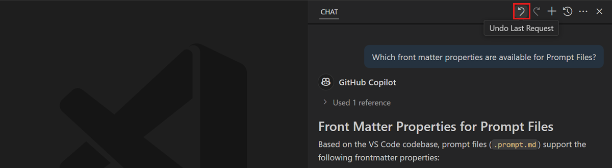 mode : le "chat mode" à utiliser pour le prompt, i.e. "ask", "edit" ou "agent" (par défaut)