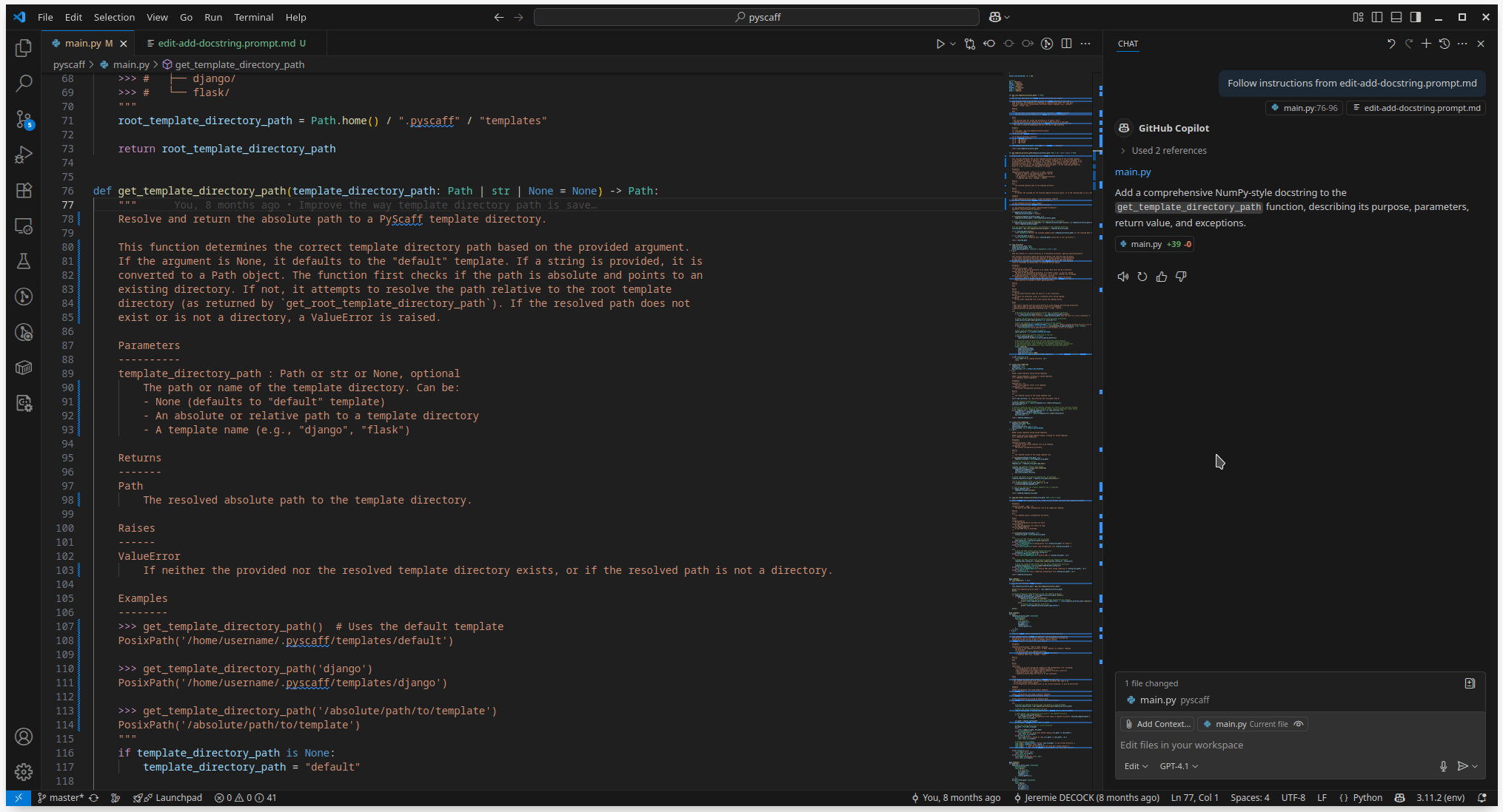 Ctrl+Shift+P) et sélectionnez un fichier prompt dans la liste.