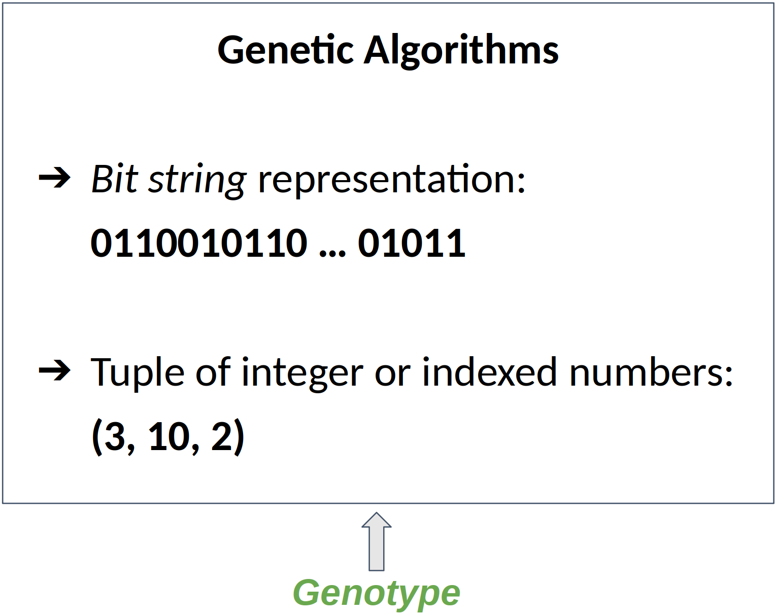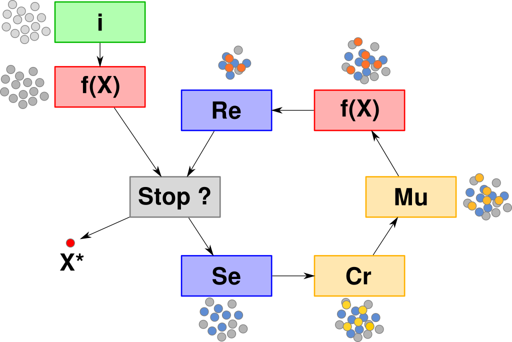 - Iterative methods where several solutions (called individuals) are tested at each iteration